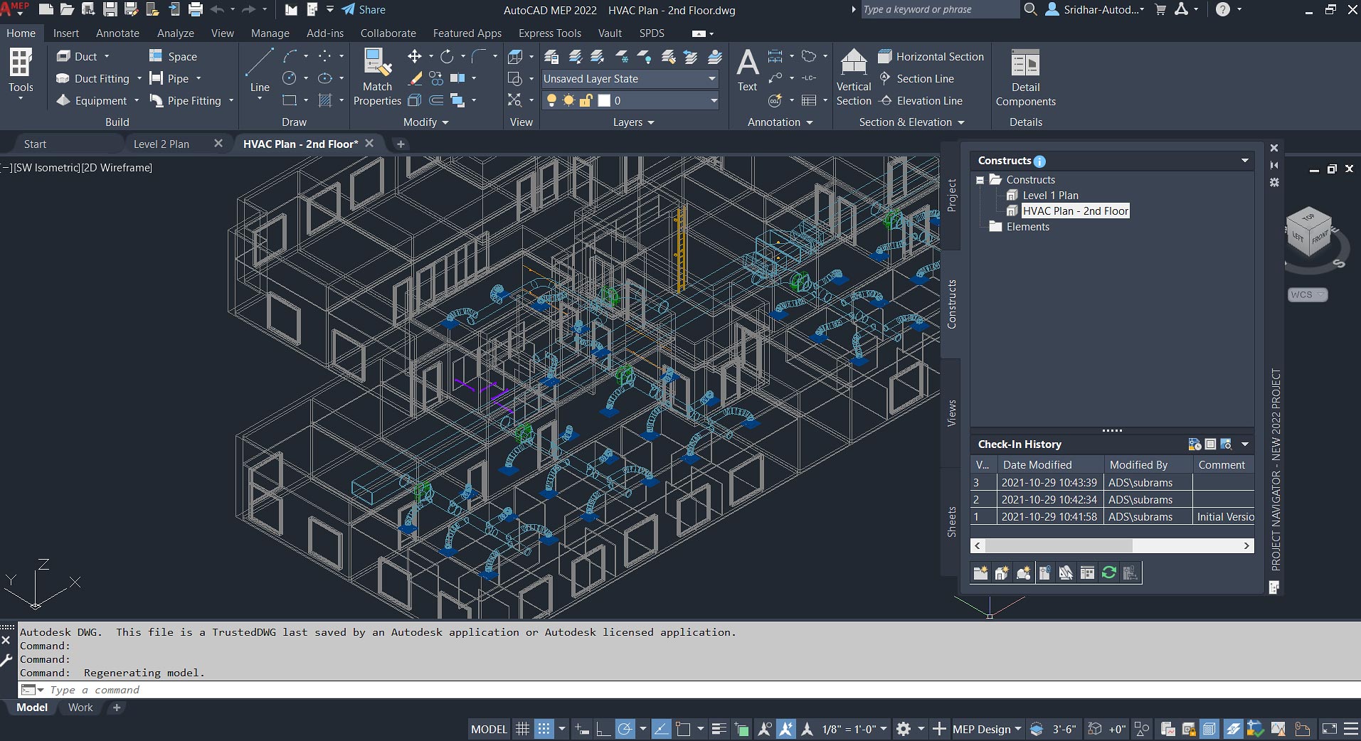 MEP 特定的工作空间环境包括单个选项板和域特定的功能区,以优化工作流任务并节省时间。