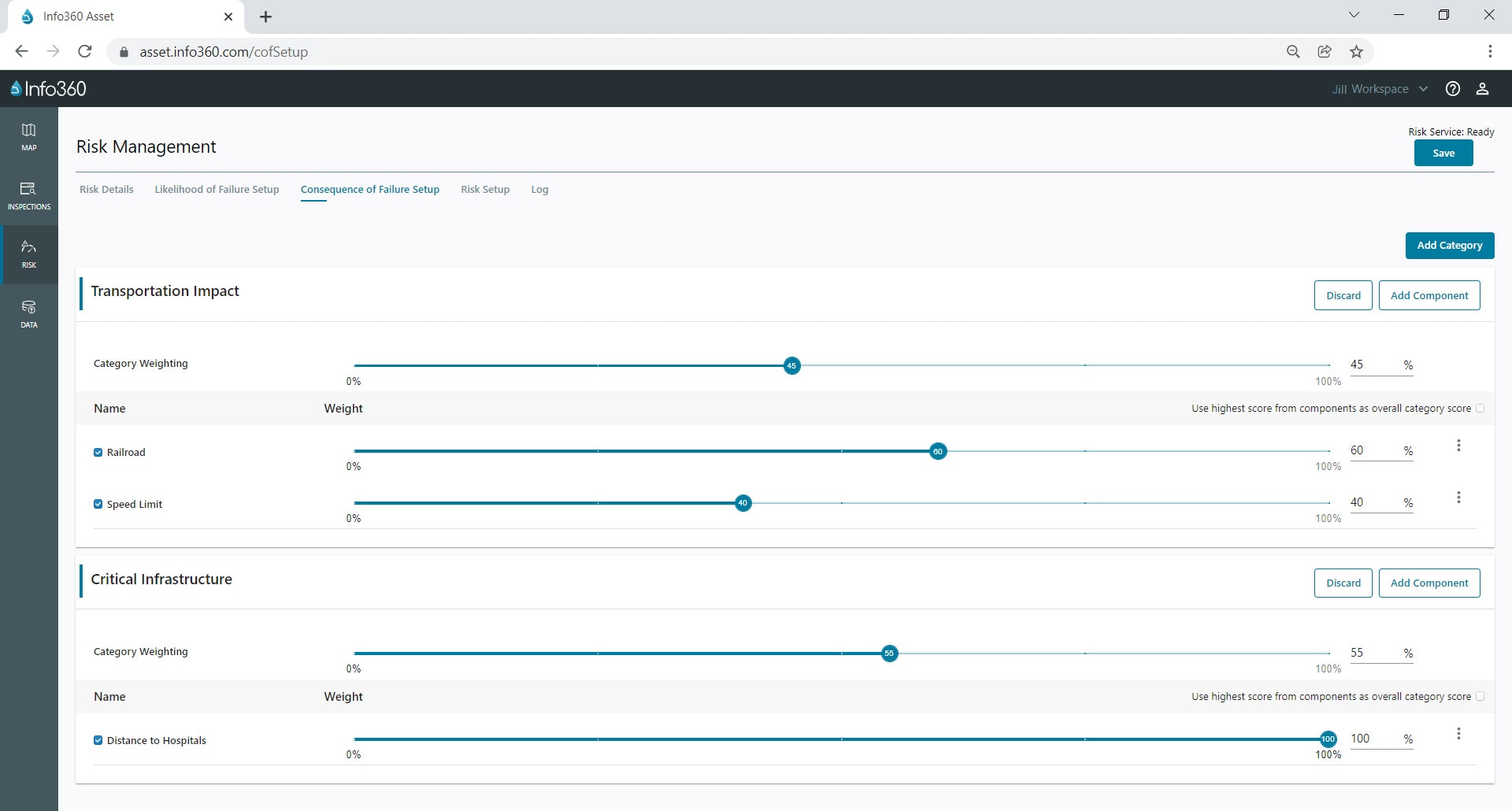 Info360 Asset 通过 5x5 矩阵扩展了其高级风险分析方法,可根据易于配置的 LoF 和 CoF 分数组合确定风险等级。用于风险分析的 5x5 矩阵支持在 LoF 和 CoF 之间灵活加权,并支持加法和乘法风险计算方法。(视频:1 分 46 秒)(英文)