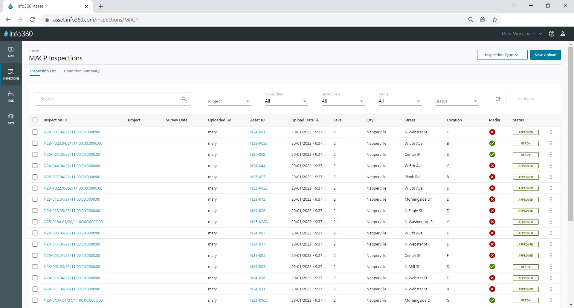 接收并更快速地批准批量检验,以获得风险模型和修复决策支持。在地图上显示检验以供所有用户查看,而无需上传关联媒体,并可以选择稍后上传大型媒体文件。