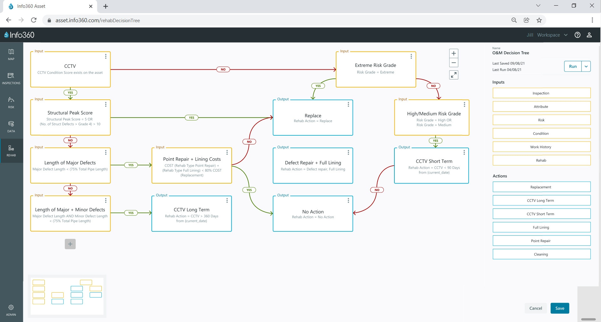 现在,您可以选择根据 CCTV 检测中的特定资源缺陷或已导入到 Info360 Asset 中的自定义数据表进行决策树查询。(视频:1 分 24 秒)(英文)