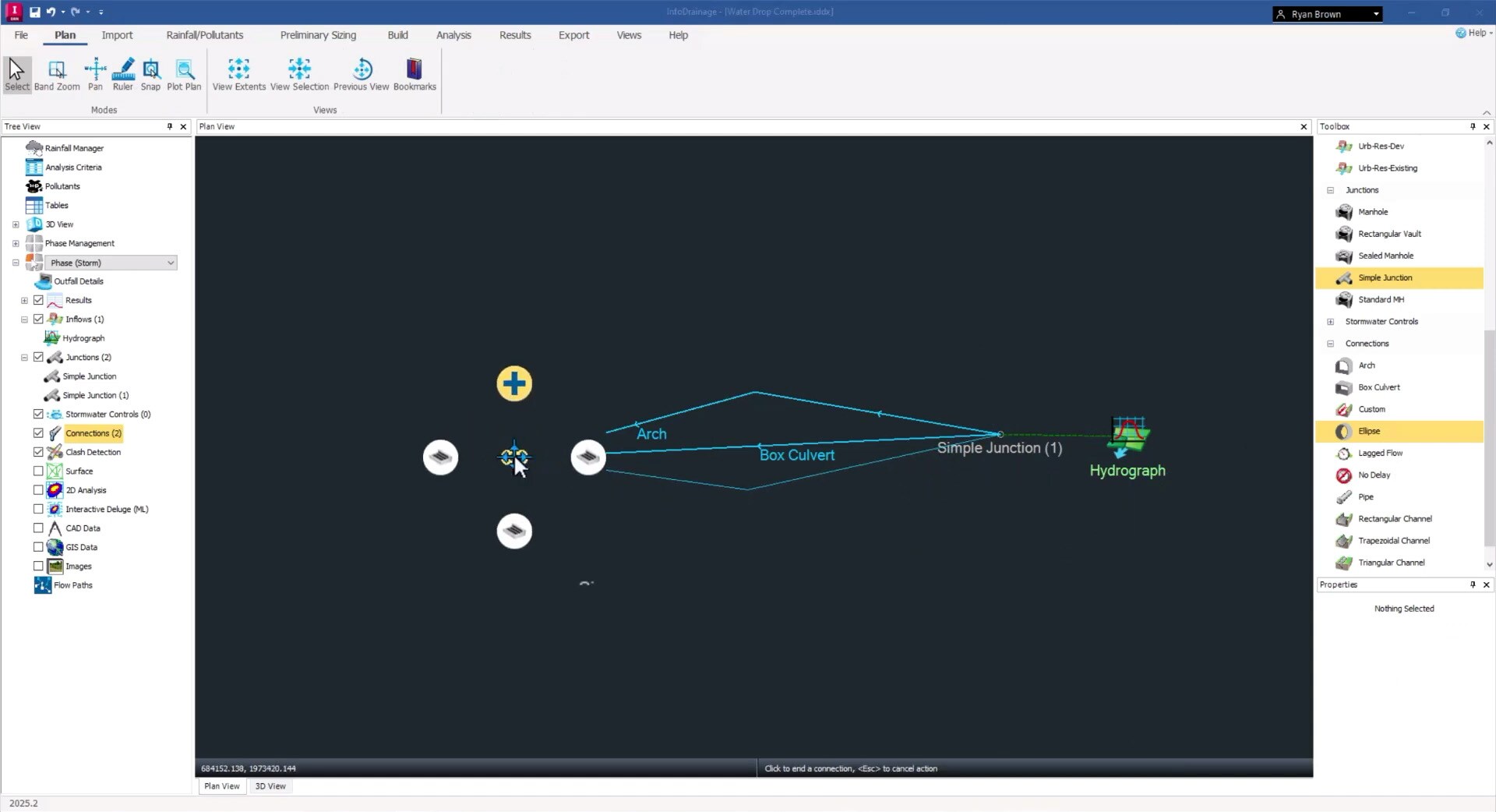 用户现在可以使用涵盖 57 种涵洞类型的综合选型库,包括圆形、箱形、椭圆形及拱形等多种几何结构与入口配置。这项新功能能够对涵洞行为进行更准确和详细的建模,从而提升整个排水系统的设计流程。