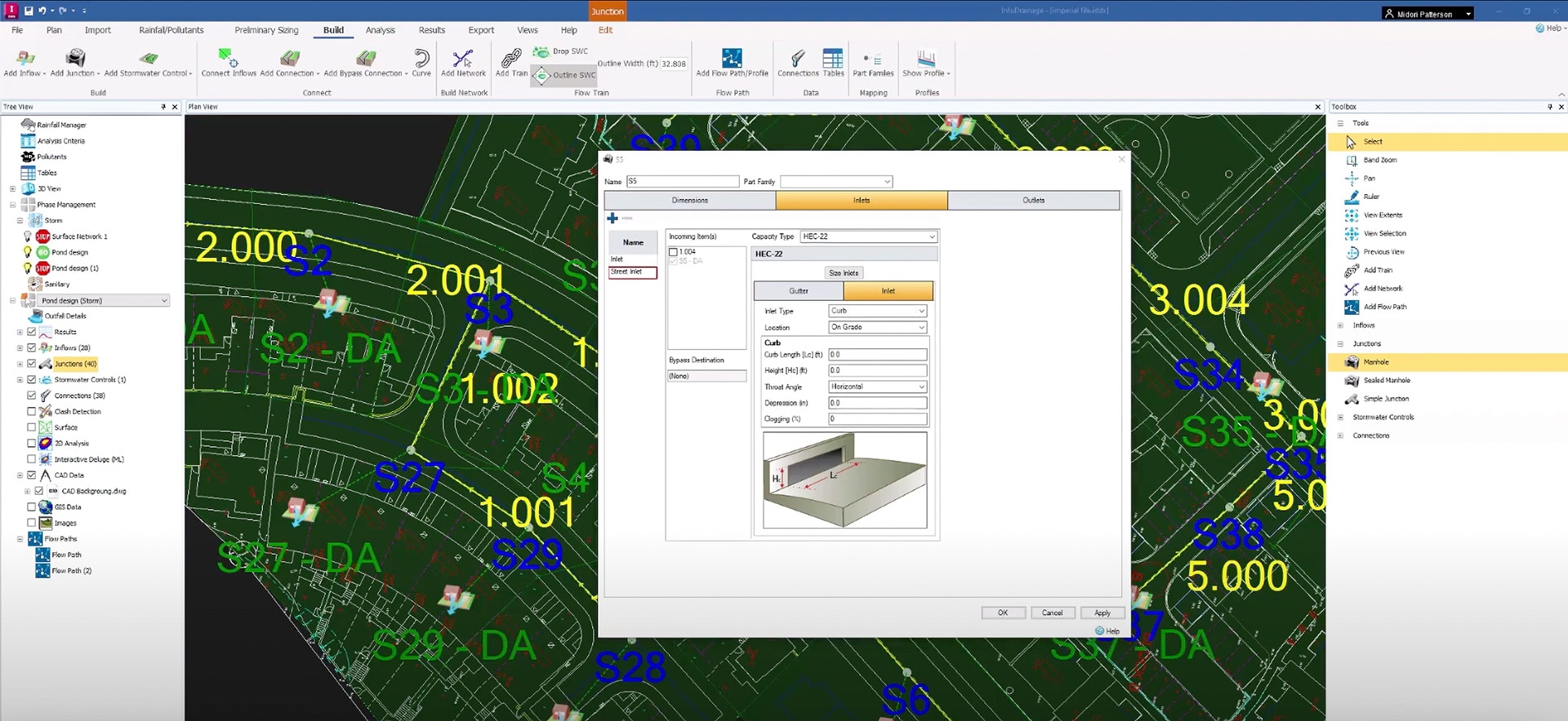 借助 InfoDrainage,设计师、工程师、顾问、开发人员、审阅者、水力建模师、批准机构和供水公司可以设计和核查排水系统。